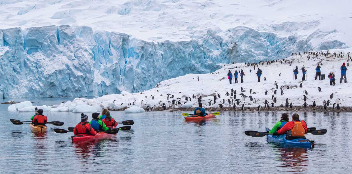 When we are in the Arctic region we have a maximum of 120. The ship was built to take 160 but because of the limitation of how many people we can have ashore at any one time in the Antarctic and the Arctic is 100 passengers. Because we offer kayaking and some other water activities, we can get everyone off the ship with 100 ashore and 20 people out kayaking. Of course, not everybody will want to spend 3 to 4 hours ashore, so as some return, kayakers can take their place. It works really well.