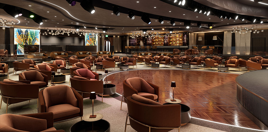 At any point along a journey guests can explore an unprecedented seven onboard venues, offering simultaneous choices from a wide variety of different styles of entertainment. Instead of a single main event, they can enjoy any experience they wish at whatever time they choose. With no restrictive starting times, they simply dip in and out at their own pace, finding the right vibe at the right time. With their cutting-edge sound, light and visual capabilities, the ship’s lounges and venues can play host to a vast range of possibilities.