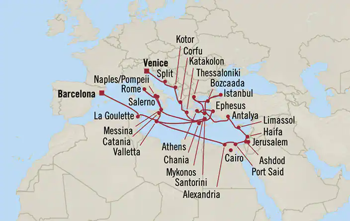 • Mediterranean Mystique | Barcelona to Rome | 22 days, departing 29 September