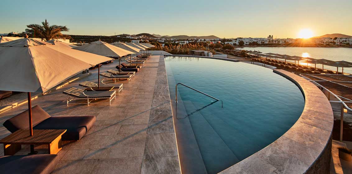 The one place on the island not to miss is the fishing town of Naousa – the jewel of Paros – it typifies this new Paros with its welcome mix of traditional Greek with the contemporary through it’s offering of luxury hotels and great food scene. The whitewashed harbour town is the cosmopolitan heart of Paros – ideal for upscale shopping and eclectic dining, as well as mingling with locals and their enthusing nightlife.Located in Naousa and opened in July this year, the place to stay on Paros in 2023 is Cosme, a Luxury Collection Resort. With the clear-blue Aegean water at its feet, beachfront Cosme, embraces the energy of the sea and reciprocates the joyful pulse of the town.