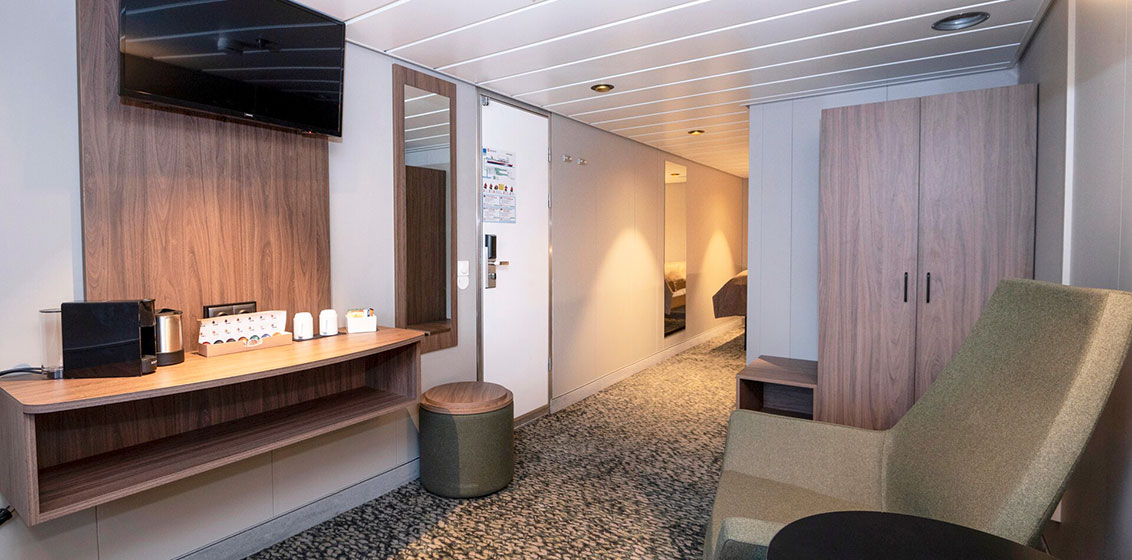 The classic ship enters its 40th year on the coast in Hurtigruten’s 130th the anniversary year. On this occasion, 32 cabins have been upgraded, and two new mini-suites have been built. The cafeteria, restaurant and Trollfjord lounge on board have also received a major facelift.