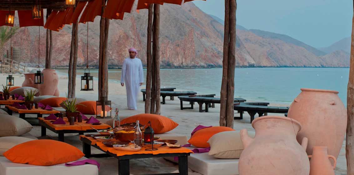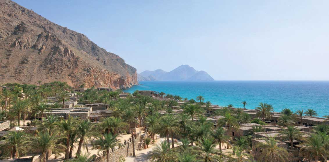 Leave the mega-metropolis that is Dubai progress for flat unadulterated desert. Later, the terrain evolves to soaring mountains. Zigzag up to 1,000 metres and wow, look down the other side. Far below is the Strait of Hormuz, with Zighy Bay enwrapping what looks like an oasis village. Extreme arrival is now to paraglide down, bags taken by car, but general arrival, also memorable, is vehicular zigzagging down, followed by driving right through a bijou soukh market.