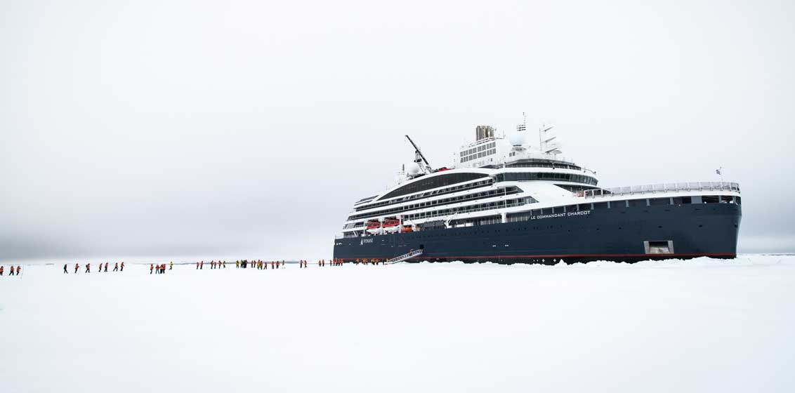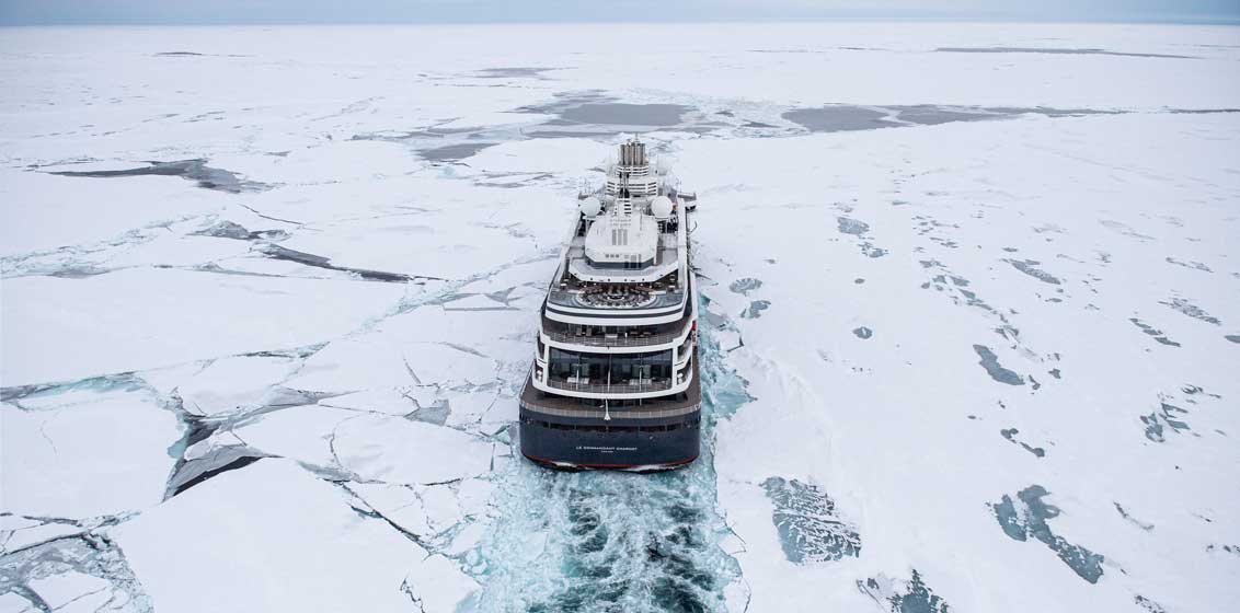 What makes Le Commandant Charcot so unique and a game changer in the expedition cruise market are her capabilities to penetrate ice as thick as 2.5 metres, an ice ridge of 15 metres, and temperatures as low as -25C.