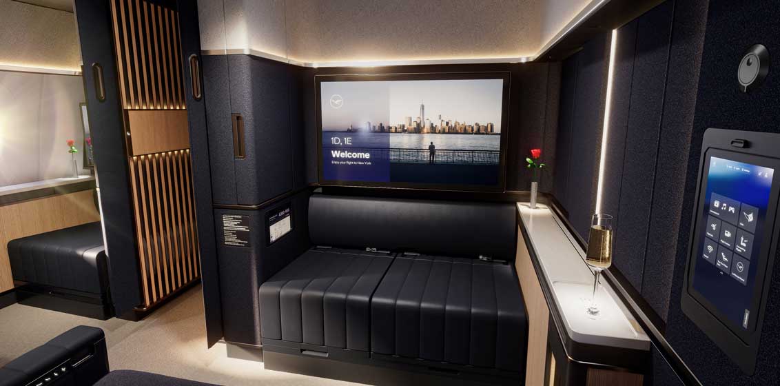 Lufthansa is expanding its premium First Class offering with the “Suite Plus,” a separate double cabin with ceiling-high walls and an entirely closable door, large table and two wide seats that can be combined into a comfortable double bed if required.