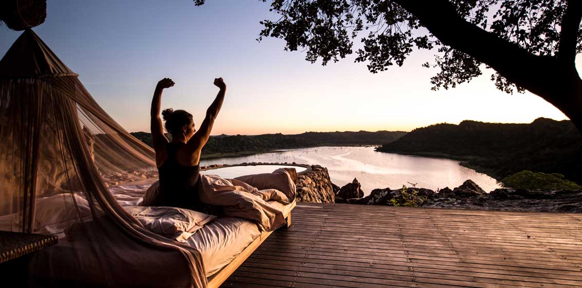 Perched on a sandstone ridge, Singita Pamushana Lodge’s eight elegant suites – all with private plunge pools – is an ultra-luxury retreat within the 130,000-acre Malilangwe Wildlife Reserve, in Zimbabwe’s remote southeast.