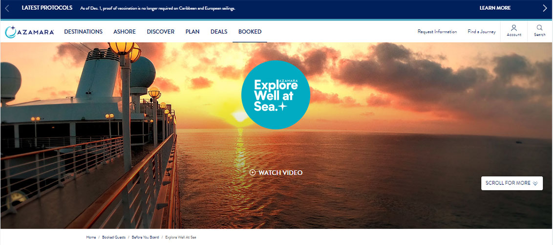 Azamara is advising guests of a website relaunch, aimed at making the platform a “one-stop shop for booking cruises, shore excursions, pre/post land programs, and onboard packages.”