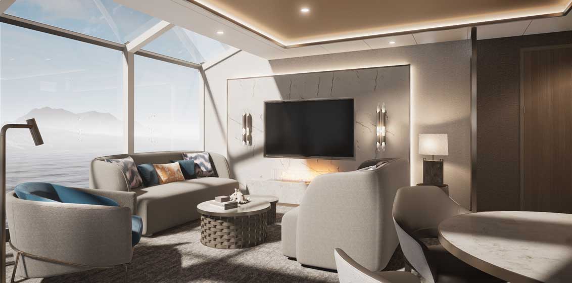 Offering one of the strongest connections with the destination in ultra-luxury expedition cruising, Silver Endeavour’s two new Master Suites, located towards the ship’s aft, will provide uninterrupted, 270-degree views from their 29 sqm verandas and large living areas, thanks to panoramic, vaulted glazing. Spacious, at 108 sqm, the two Master suites will feature expansive living and dining areas; perfectly proportioned bedrooms with king-sized or twin beds, and a walk-in closet; and a roomy bathroom with a walk-in shower, and separate whirlpool bath. The living room will include a convertible sofa to accommodate a third guest.