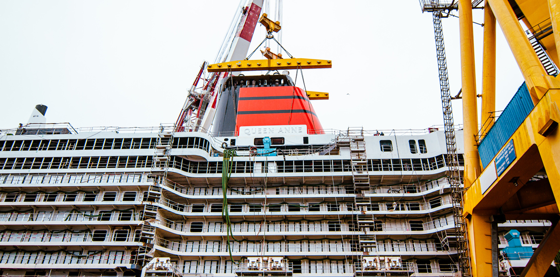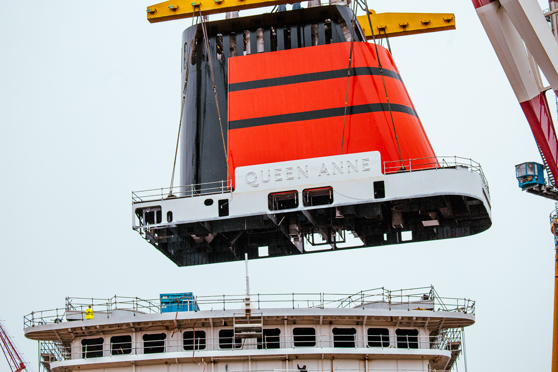 It is an important shipbuilding moment that marks the installation of one of the ship’s most recognisable features.