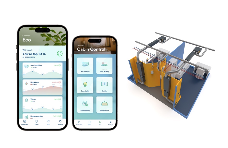 Guests will play a key role in minimising energy consumption through an interactive mobile app, where they can operate ultra-modern cabin ventilation, as well as measure their own water and energy consumption.