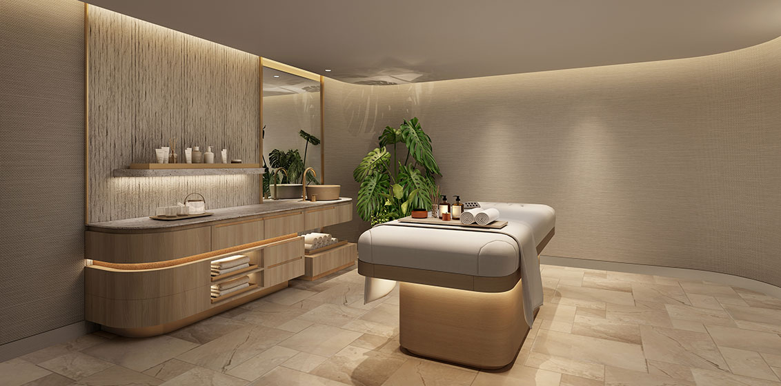 The spa lounge embraces a selection of seamlessly connected relaxation zones, offering unique private and group experiences to complement an extensive menu of indulgent, calming, renewing and invigorating treatments.