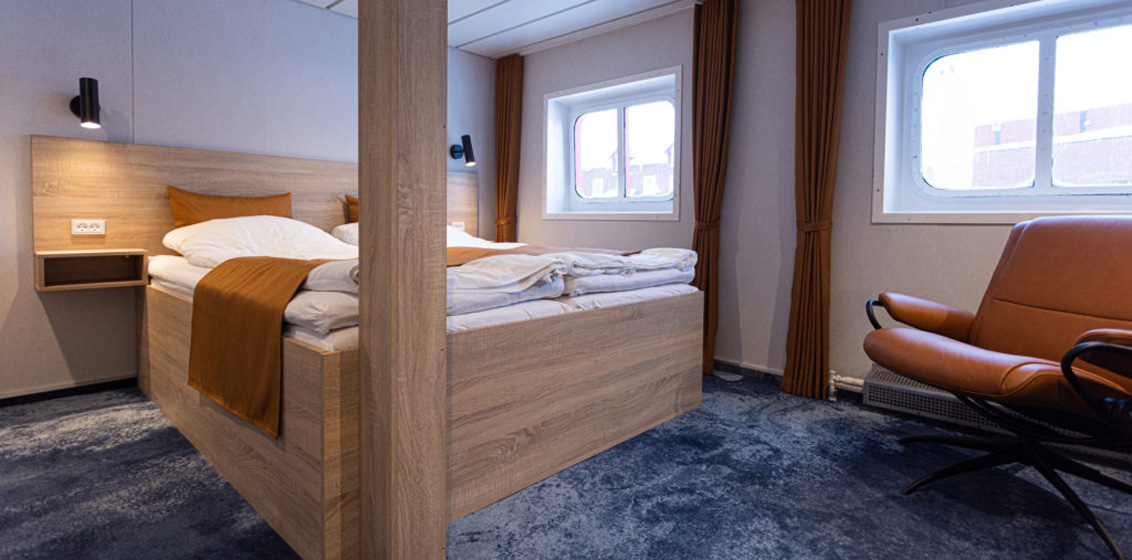 Arctic Umiaq Line operates the ship MS Sarfaq Ittuk. It has a capacity of 228-passengers, with accommodation comprising 126 couchettes, 24 cabins, two junior suites – and, since March 2023 – a spacious Igloo Suite.