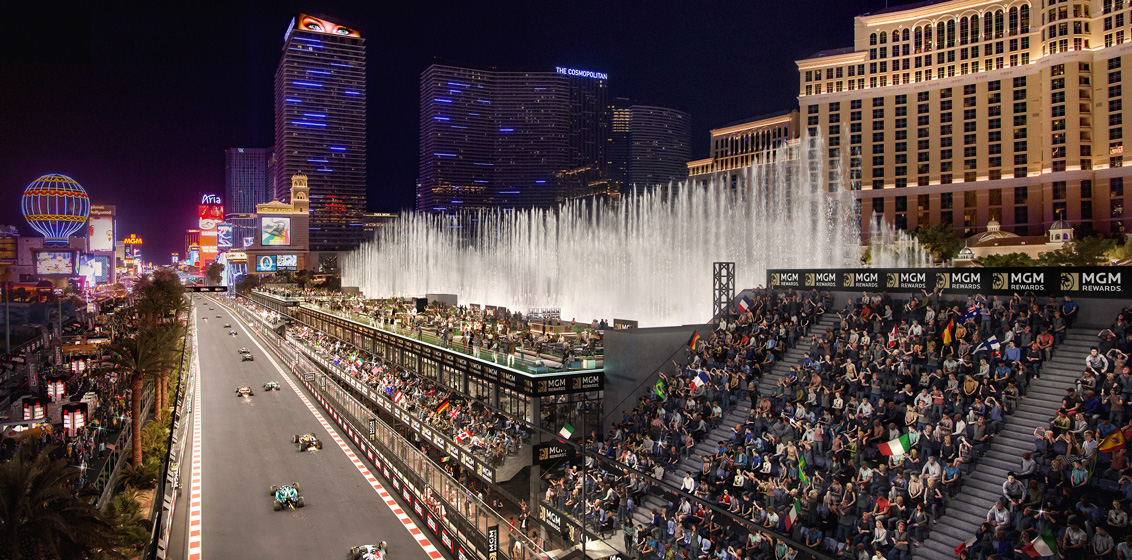 Tickets for the inaugural Formula 1 Heineken Silver Las Vegas Grand Prix remain available for MGM Resorts International’s luxury Bellagio Fountain Club, the Company’s premier viewing experience, along with two other grandstand and seating options. The event takes over The Strip between 16–18 November 2023.