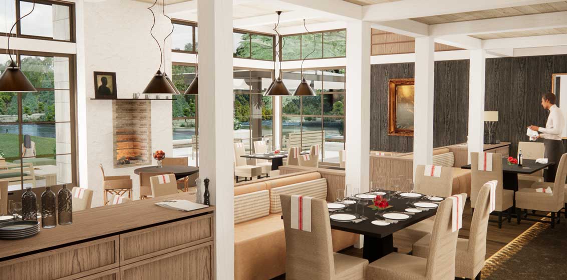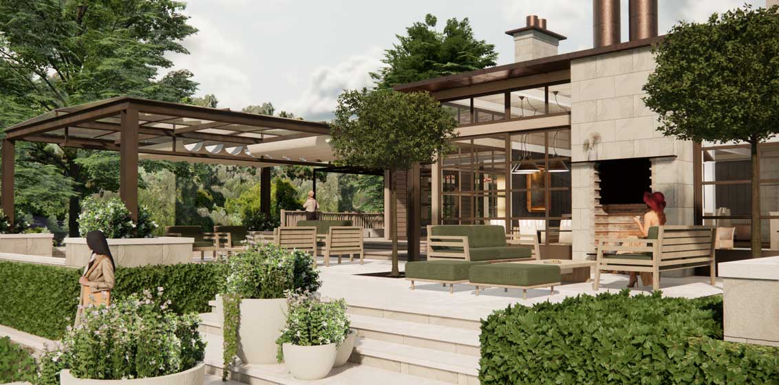The north-facing outdoor terrace will be substantially expanded in a stylish integration between the indoors and out. The addition of a feature outdoor fireplace and contemporary glass-roofed pergolas will create more outdoor lounging and dining space for guests.