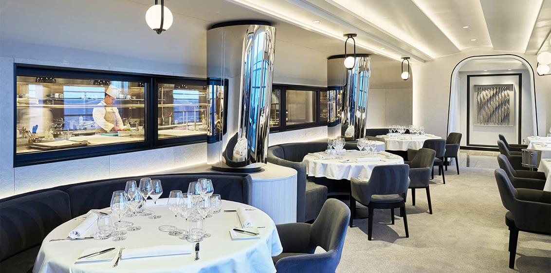 EXPLORA I’s Anthology restaurant is a culinary stage on which guest chefs curate menus in collaboration with Franck Garanger, Explora Journeys’ Head of Culinary, showcasing global cuisines along with wine pairings by illustrious winemakers for a one-of-a-kind culinary experience. Set in sophisticated, refined elegance, with the opportunity to dine al fresco, lower light levels, and flawless service create an intimate yet elevated atmosphere.