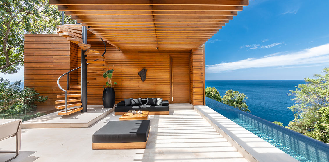 The contemporary Villa Mayavee is exquisitely designed to capture breathtaking views of the Andaman Sea from sunrise to sunset. The property is characterised by sprawling terraces and expansive floor-to-ceiling windows, which create seamless indoor-outdoor living spaces.