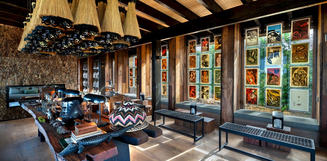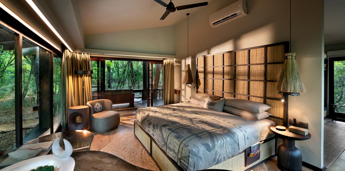Elements of the natural forest and Zulu culture have been brought into the room through the use of tactile textures and natural materials such as woven matting, textured grass cloth wallpaper, and hardwood floors, with natural stone tiling in the bathrooms. The rooms have been reconfigured within the existing structures, creating a more comfortable layout that better utilises the existing space, while maximising the connection to the forest through wide open views.
