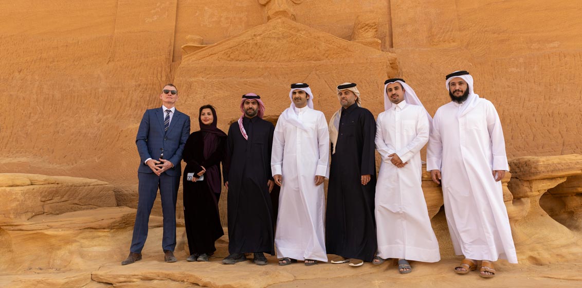 The pinnacle of the trip was the significant visit to the Kingdom’s first UNESCO Heritage Site, Hegra, where His Highness Prince Badr bin Abdullah bin Farhan Al-Saud, Minister of Culture of the Kingdom of Saudi Arabia, received the VIP delegation for a photo opportunity which included a remarkable backdrop of the Tomb of Lihyan Son of Kuza.
