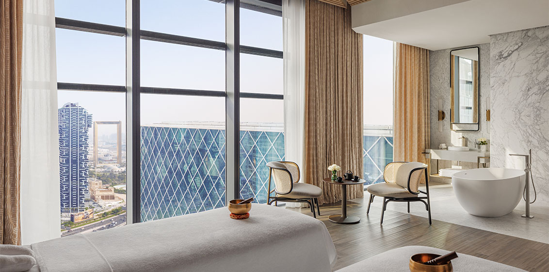 Marking yet another first for One&Only, a one-of-a-kind collection of corner suites feature exceptional amenities for discerning travellers. Designed for seamless city living, the Za’abeel Suite offers 180-degree views of Dubai’s ever-evolving skyline. For a pampering wellness stay, the Sanctuary Suites include a massage table, and in-room spa treatments, while the Creative Suites feature acoustic panelling, the latest AV technology, and an in-suite private cocktail soirée for up to 10 guests.
