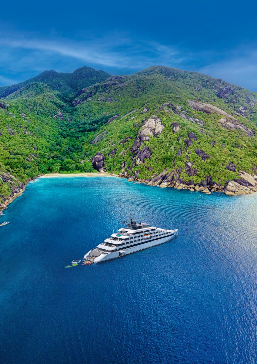 Guests next fly to the Seychelles (included) and following an overnight stay in Mahé, board Emerald Azzurra and chart a course for Sainte Anne Channel. Over the next week aboard the 100-passenger superyacht, guests will explore Praslin Island, La Digue Island, Curoeuse Island and Aride Island and the eight islands of the Seychelles.