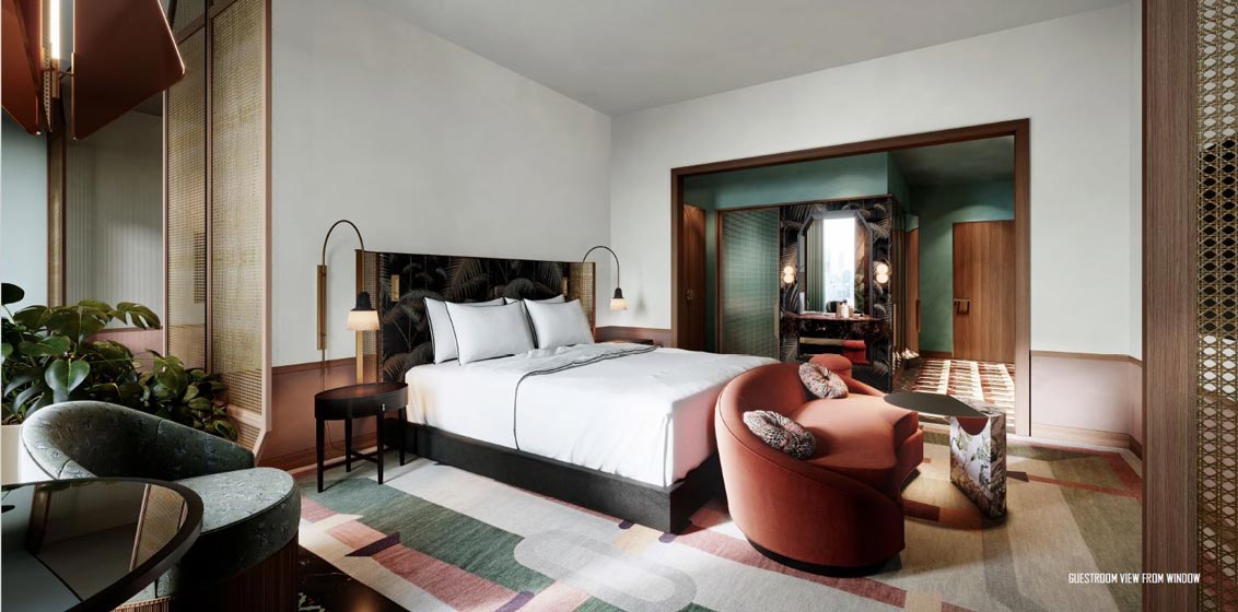 There will be three food & drink venues throughout the property, including an all-day-dining restaurant, a lobby lounge, and a rooftop bar and speakeasy overlooking a swimming pool with expansive views of the city.