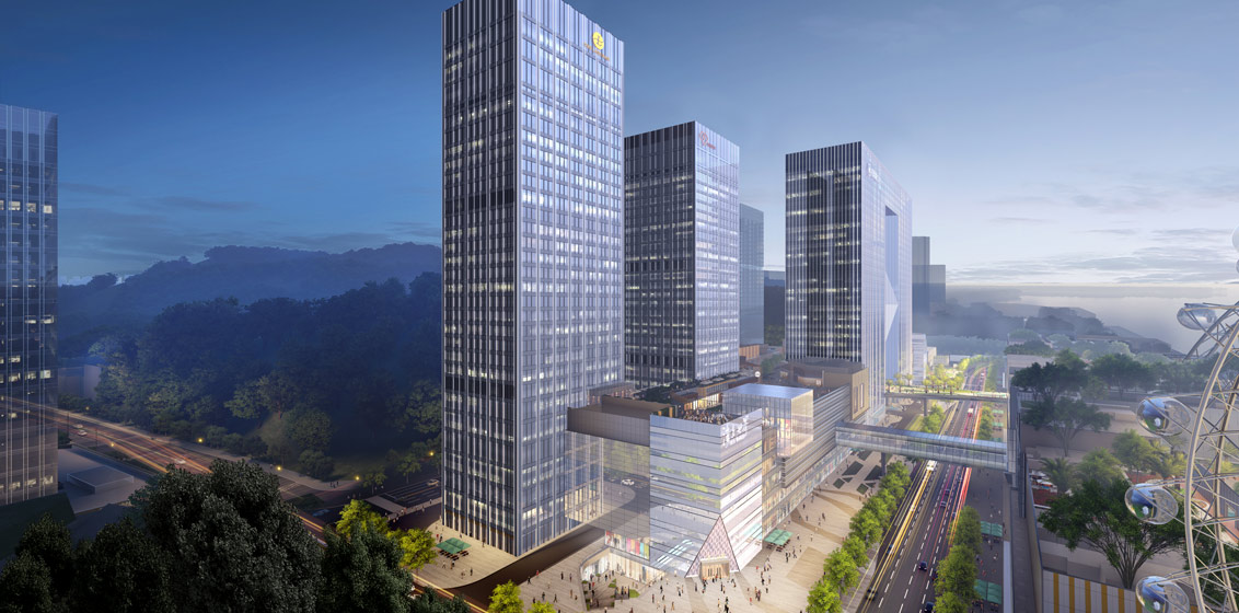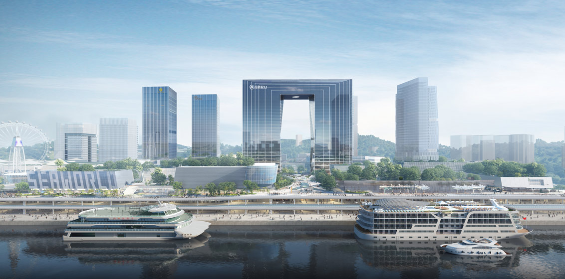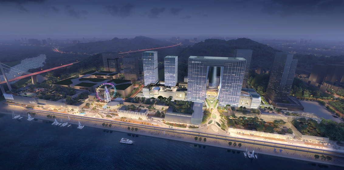 The plot itself sits in a well-situated part of Dongdu Free Trade Zone that affords the two towers to house the hotels with unobstructed ocean views and vistas of nearby Huweishan Park.