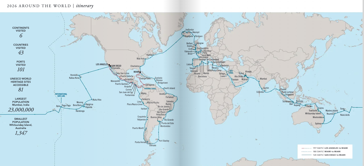 To whet the appetite of potential guests, Oceania Cruises has released a 68-page brochure on its 2026 Around the World Cruise. View it here.