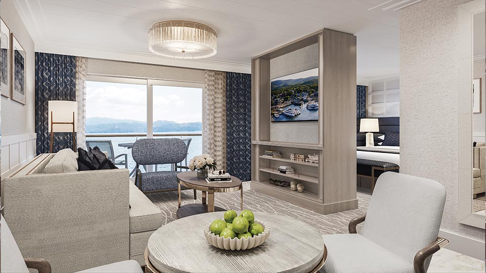 The ships will feature five stateroom and suite options from which to choose – Grand Suite, Sky Suite, Vista, AAM and Single cabins.