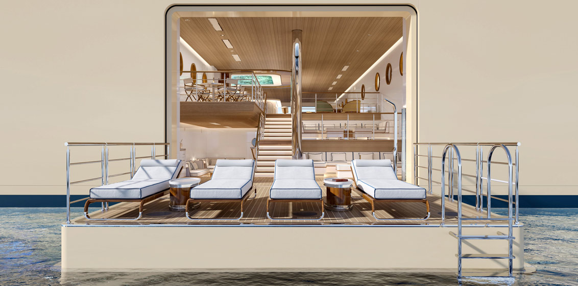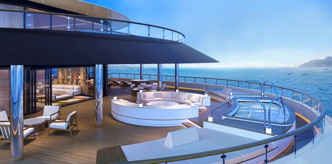 Guests can enjoy 11 dining options, spa and wellness offerings, a state-of-the-art transverse marina, and the stern pool, set to be one of the largest in the industry at nearly 19 metres long and 5 metres wide. Its unique hydraulic lift design will allow the pool deck to level out, creating an expansive outdoor space for weddings, celebrations and other events.
