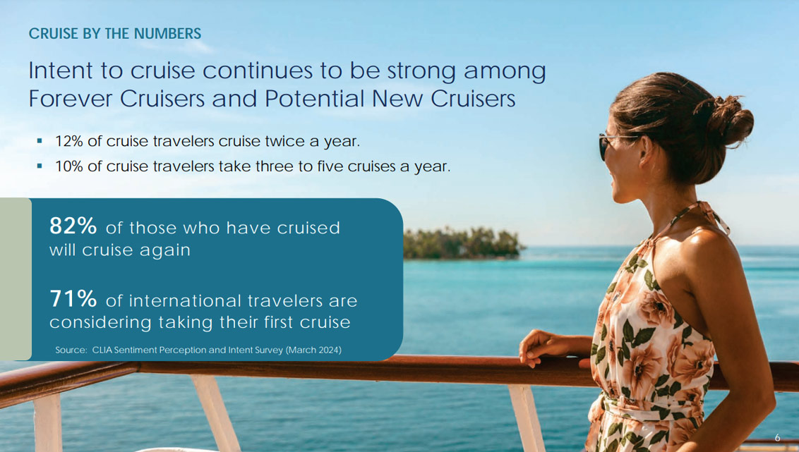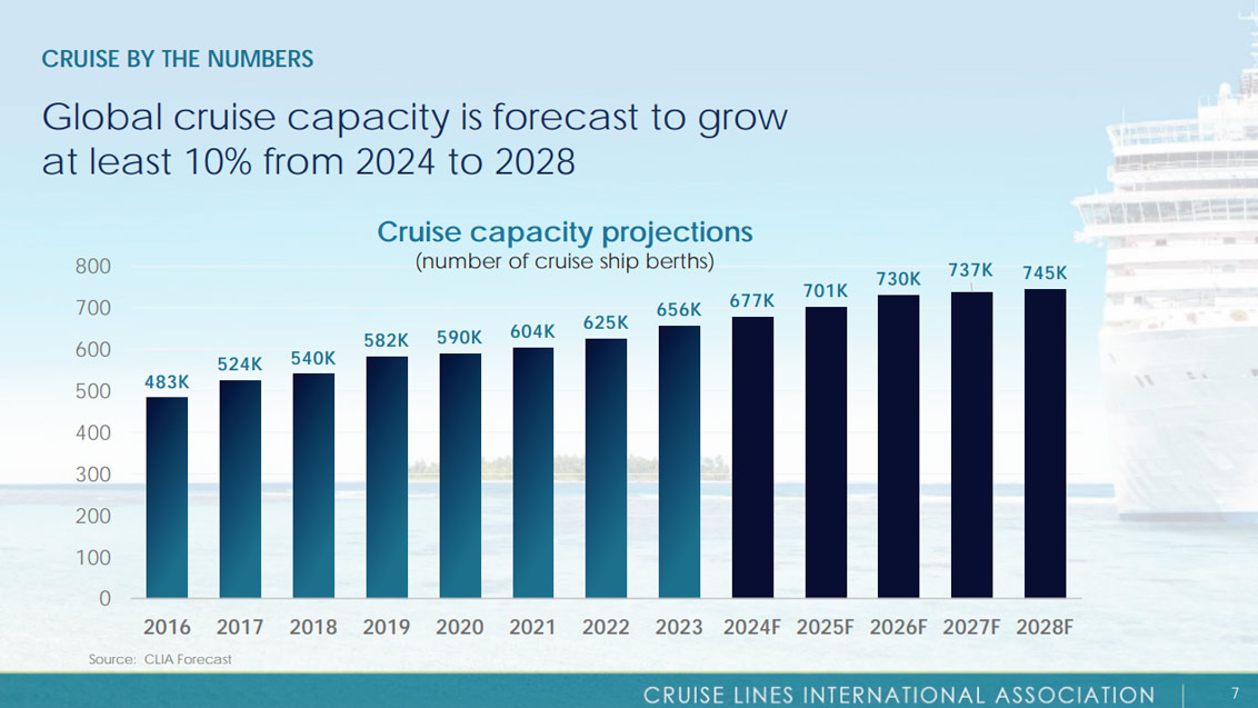 CLIA has forecast that in 2024 the total number of cruise passengers will reach 35.7 million, rising to 39.4 million by 2027.
