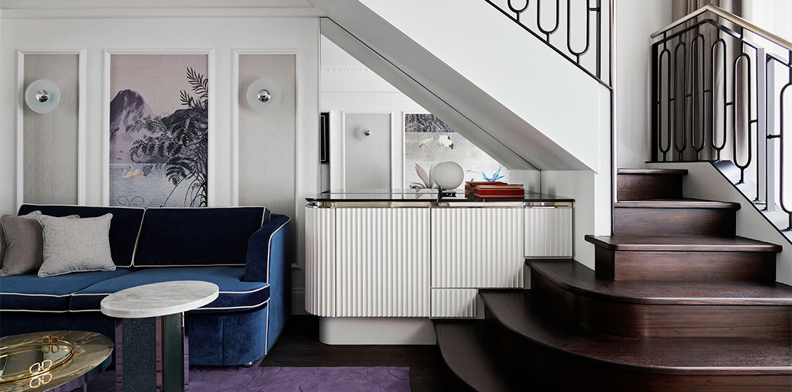 Offering a discreet, 24-hour concierge service, guests enter through the lavish Lobby Lounge, reminiscent of old-world establishments that once played host to high society. Adjacent, they’ll find signature restaurant, Showroom Bar, featuring 9-metre-long bar top and plush furnishings, as well as a centrepiece 14-metre tall, curved marble fireplace and 2-metre-wide chandelier. A sweeping marble staircase curves elegantly around the side of the room, leading guests to the balcony above and through to The Royce’s Library and Ballroom.