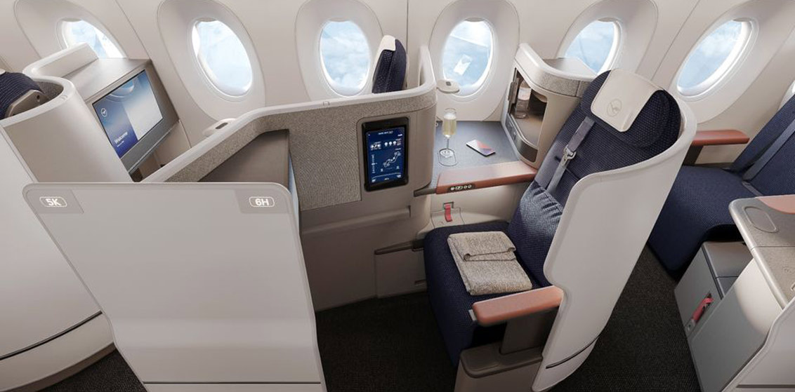 High seat walls and generous shoulder space provide greater privacy in all options. The seats can be converted into a bed at least two meters long and also offer high-definition screens (4K), generously-sized dining tables, wireless charging, noise-canceling headphones and Bluetooth connectivity. All seats are also equipped with a heating and cooling system, giving business class travellers the flexibility to set their own temperature.