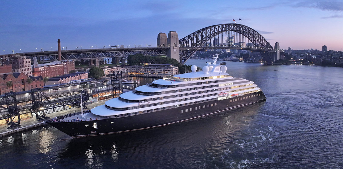 Scenic Eclipse II officially arrived in Australia this morning, making a stunning entrance into Sydney Harbour ahead of its first-ever exploration of Australian waters. The ship will then embark on a two-year series of luxurious voyages in the Oceania region, heralding a new era in ultra-luxury cruising.