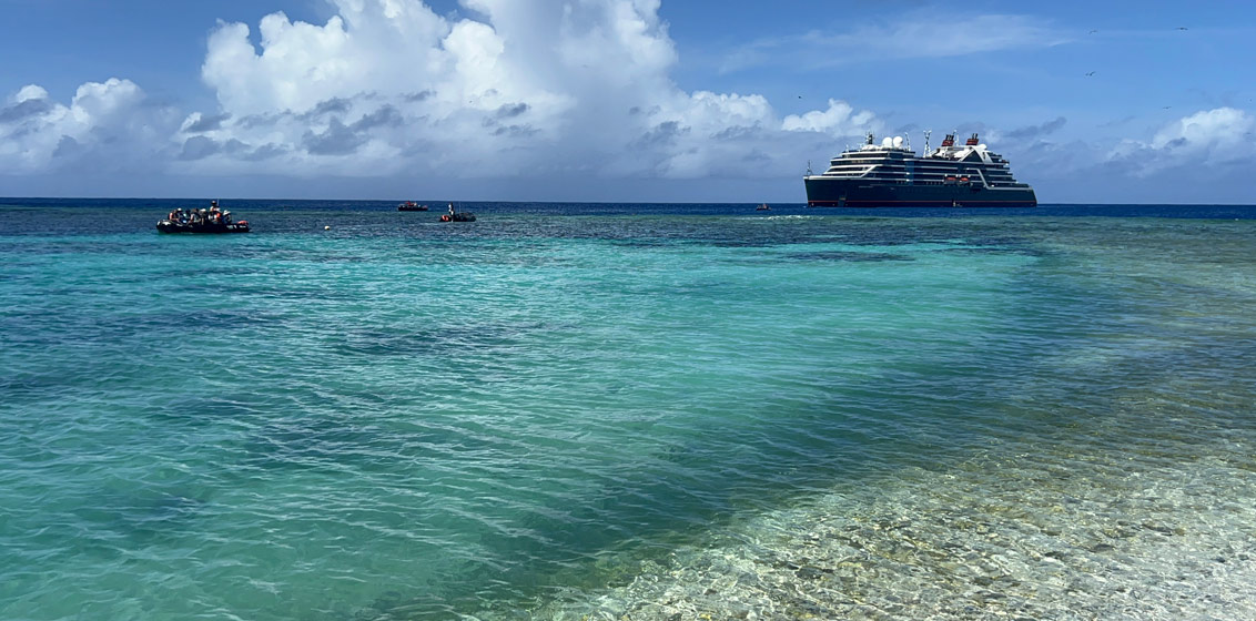 Both islands are inaccessible to traditional ocean ships as there is simply no cruise ship infrastructure (piers or docks), and the typical lifeboat tenders would be incapable of providing ‘dry’ landings for guests.