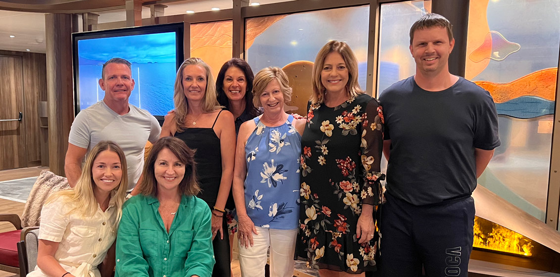 Lead image: In the Expedition Lounge of Seabourn Pursuit, from left are: Kate Traynor, Destination HQ; Ross Quigly, Luxury Cruise Escapes; Jennifer Compton, Seabourn; Nicole Reber, Mosman Travel; Rachel Husoy Cleary, Luxe Adventures; Sue Okmasich, Unley Park Travel; Megan Catterall, LUXE by itravel and Richard Muff, Off the Beaten Track Travel.