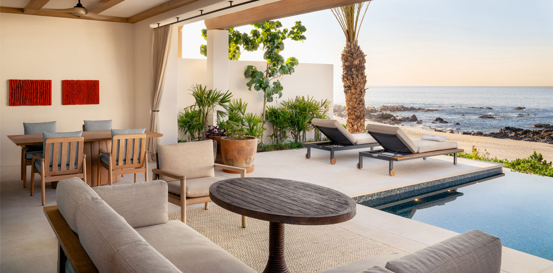 Accommodations set a new standard of luxury beachfront living with unrivalled space and thoughtful design. Indoors and outdoors are one, from the retractable, floor-to-ceiling glass doors that look out to the Sea of Cortez and expansive outdoor terraces to the private plunge pools and outdoor showers.