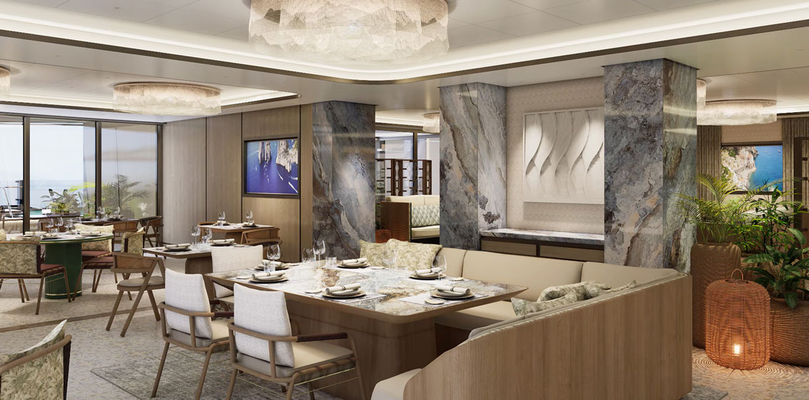 These concepts will complement Memorī, which will serve contemporary Pan-Asian dishes; Mistral, which will offer Mediterranean flavors; and Tides, which will present a regionally inspired menu. A well-rounded beverage program throughout the yacht will enhance all dining experiences.