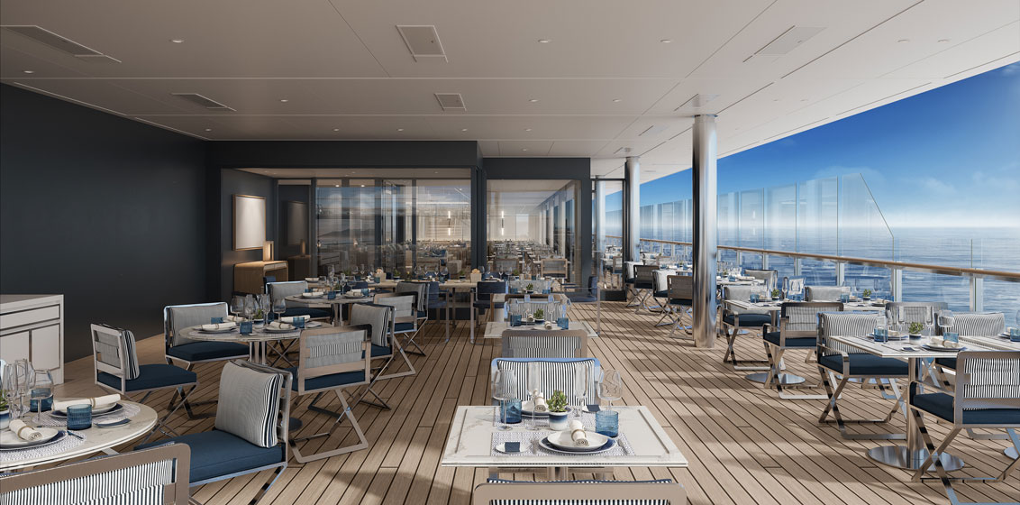On Deck 10, Mistral will celebrate timeless Mediterranean fare with traditional breakfast dishes in the morning, followed by handmade pastas and pizzas, crisp salads, and fresh seafood, along with grilled steaks and chops complemented by an extensive wine list as the day cascades to evening. A picturesque perch for a casual lunch, romantic dinner, or cocktail overlooking the water, this indoor/outdoor venue will offer some of the best views on the yacht.