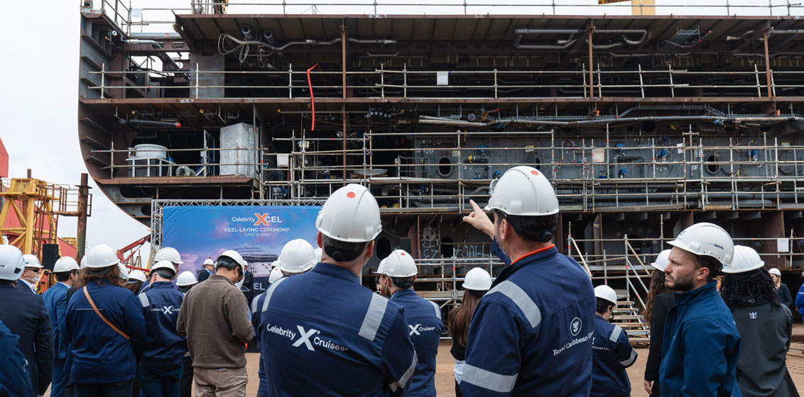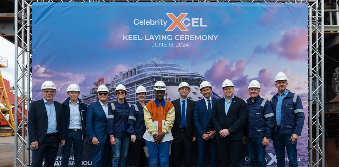 Construction commenced for Celebrity Cruises’® next ship, Celebrity Xcel® yesterday with the keel laying ceremony at the Chantiers de l’Atlantique shipyard in Saint-Nazaire, France.