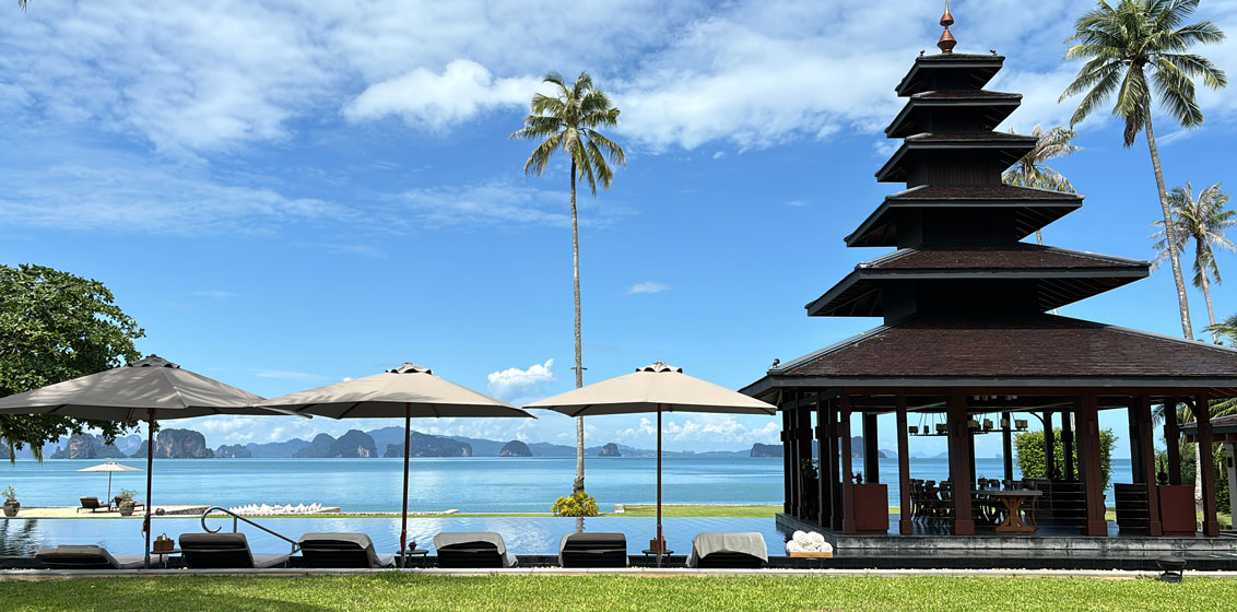 Lead image: The main pool overlooks Phang Nga Bay