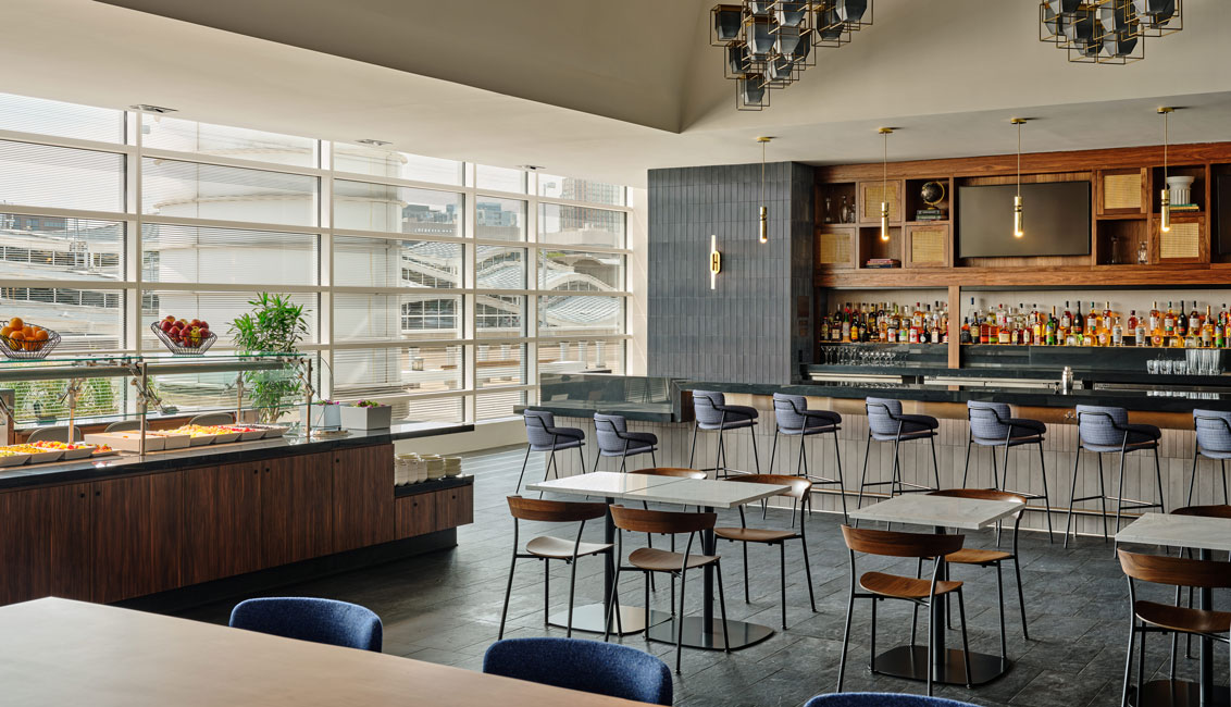 The lounge also offers signature Centurion Lounge amenities, including a conference room, a phone room, dedicated workstations, premium restrooms and shower suite, several seating areas and access to complimentary high-speed Wi-Fi. Floor-to-ceiling windows offer views of the airfield and the Potomac River.