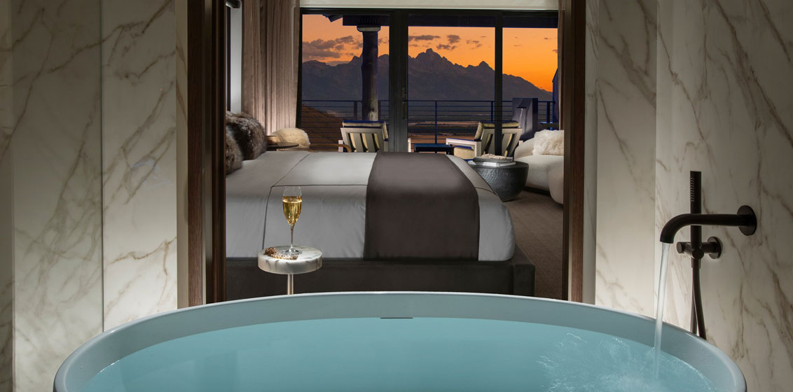Located 8kms from the historic Jackson Town Square, Hotel Yellowstone’s design pays homage to the American West while seamlessly blending influences of modern design. The hotel’s lavishly appointed suites encompass 56 square metres (600 square feet) of indoor and outdoor space – each set with a private balcony – boasting state of the art in-room accoutrements.A haven for connoisseurs of sophisticated taste, the hotel’s four suite styles: Reflection Suites, Vista Suites, Grand Teton Suites and Grand Reflection Suites, feature tailor-made Restoration Hardware furnishings, head-to-toe Calacatta marble bathrooms and oversized soaking tubs angled to overlook the Tetons.