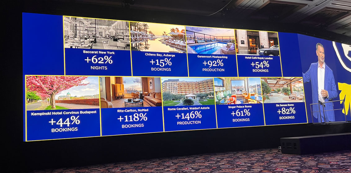 A slide from his presentation showing the success of those enhancements pinpointed that production at the likes of Gansevoort Meatpacking (New York City) and the Rome Cavalleri, Waldorf Astoria were up 92% and 146% respectively. Meanwhile bookings at Six Sense Rome and the Ritz-Carlton NoMad have soared 82% and 118% compared to the same time last year.