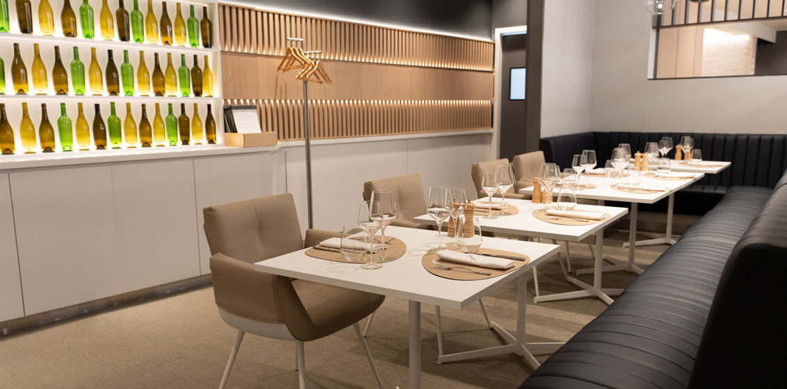 One third of the space is dedicated to the needs of business travellers and offers, among other things, functional communal tables with the option of wireless charging or wireless printing. The remaining part of the space invites relaxation and contains comfortable seating for different group sizes – from single seats for solo travellers to seating for couples or larger groups.