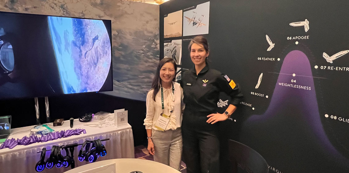 Joining Chang at the Virgin Galactic stand during Globetrotting was Jamila Gilbert, Astronaut 007 from spaceflight Unity 25 on 25 May 2023. Gilbert profiled the experience and space flight to Virtuoso travel advisors, equipping them with the added knowledge of what a Future Astronaut can expect of the experience, including the exhilarating experience when dropped from Mothership Eve, and the rocket propulsion that follows as the spacecraft throttles into space.