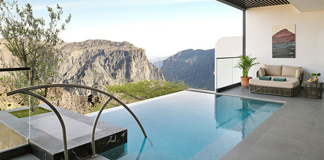 The resort’s design echoes the colours and textures of the mountains, creating a space that is both strikingly beautiful and deeply rooted in Omani heritage. Thoughtful touches and curated experiences bring to life the stories of the resilient communities that have thrived here for centuries. While the mountain’s rugged terrain once made it difficult to access, today it welcomes travellers seeking outdoor adventure, connection with nature, and a taste of authentic Omani life. Guests can wander through historic villages, discover ancient dwellings carved into the mountainside, hike amidst terraced gardens, or simply savour the tranquillity of the mountain air.