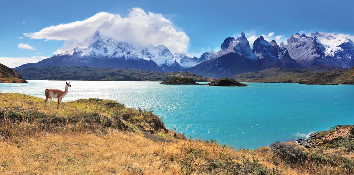 - Torres del Paine National Park** with mountains, waterfalls and wildlife