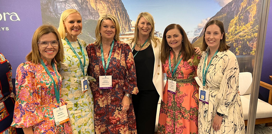 Lead image: Pictured at the ICC Sydney at Cruise360, from left are: Shannon Fogarty, LTC; Nikki Glading, LTC; Susanne Nuttall, LTC; Kirrily Plum, Destination HQ; Danielle Galloway; FCTG; Robyn Sinfield, Home Travel Company; Talia Mastronardi, Ramsgate Travel; Stacey Lyon, Home Travel Company; Emma Whiting, Emma Whiting Travel; Rachel Kingswell, Travel Associates; Suze Gower-McDonald, Travel Associates; Murray Sinfield, Home Travel Company; Justine Sealy, Ramsgate Travel Service; Byron Horne, Bicton Travel; Anna Burgdorf, LTC and Alison Haley, Bicton Travel – Image: LATTE.