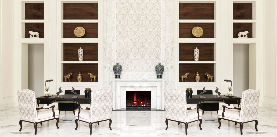 Upon arrival, guests will be enchanted by the hotel’s grandeur and majestic elegance. The high ceiling showcases meticulous craftsmanship, beautifully embellished with “muqarnas”, an iconic Arab-Andalusian architectural element from the Almoravid era. The richly decorated dome, with geometric and floral patterns, dominates the ceiling with colours of green, gold, and touches of red. At the heart of the lobby, majestic bonsai trees bring a unique freshness to the palace while elegant chandeliers grace the ceiling. The walls, adorned with singular Moroccan “Gebs” frescoes, transform plaster into masterpieces, illustrating the mastery of local artisans. These floral and geometric frescoes tell the stories and legends of Morocco through their delicate motifs.