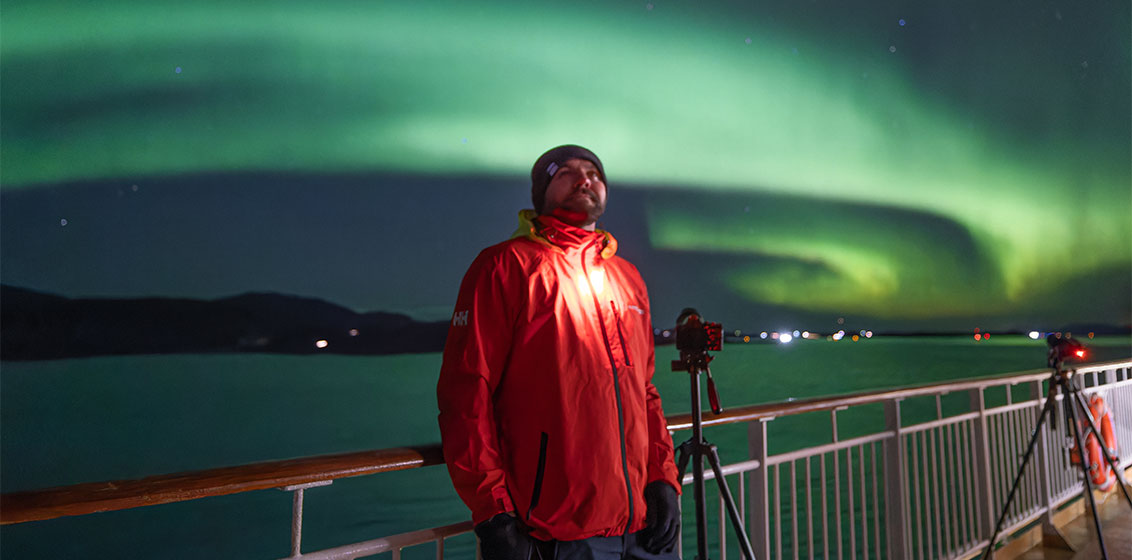Due to the extremely high visibility rate of the Northern Lights during its cruises, Hurtigruten pioneered the Northern Lights Promise 10 years ago. Earlier this year, the cruise liner introduced the world’s first Chief Aurora Chaser, astronomer Tom Kerss, the esteemed Northern Lights astronomer.