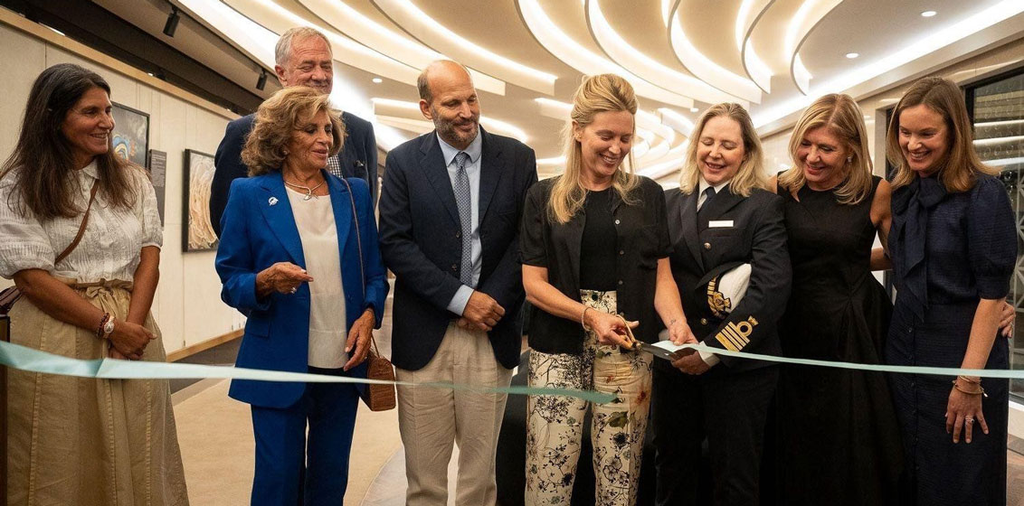 The traditional maritime ceremony featured the symbolic cutting of a ribbon to break a bottle on the ship’s bow. This honour was bestowed upon EXPLORA II’s godmother, Rosalba Giugni, Founder and President of the Marevivo Foundation, a non-partisan environmental conservation organisation committed to the preservation of marine environments, founded in 1985.